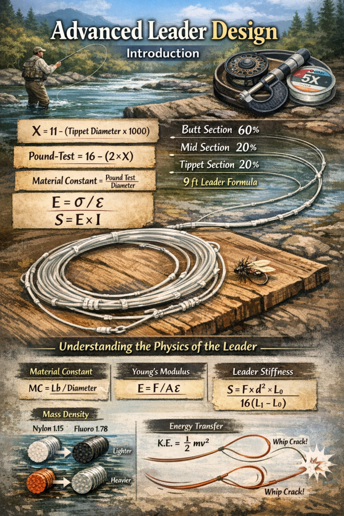 Most anglers focus on leader length or pound-test, but delving into material constants, diameter-to-strength ratios, and cross-sectional areas show a deeper understanding of how leaders behave under stress. This optimizes performance and allows for precision repairs without disrupting the taper or strength distribution. Techniques like these are game changers in technical fisheries like Western U.S. tailwaters. Whether targeting bass, trout, or steelhead, every aspect of your setup can make or break your success. Using these techniques ensures your leaders perform perfectly in stealth and strength. fly-fishing is about precision, and sometimes laying down the fly as gently as possible requires more than feel, but exact calculations for the best performance.